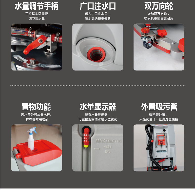 適用場景:商業(yè)地產(chǎn)、商業(yè)綜合體、小區(qū)車庫、食堂、醫(yī)院、學(xué)校、機(jī)場、火車站、汽車站、超市、酒店、工廠等。適用地面:大理石、水磨石、瓷磚、油漆地面、環(huán)氧地坪、精磨水泥、硬地面、pvc地面、光滑地面等。適用面積:2500平方以內(nèi);200個(gè)車位以內(nèi)。